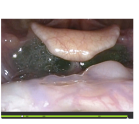 Using frame-by-frame review, scrub forward on the timeline using the cursor to the frame when the endoscopist states, “bolus presented”.