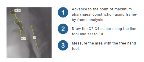 When selecting the frame of maximum constriction, please note that the frame selected must be before upper pharyngeal relaxation, before tracheal descent, before LVC opening, and before nasopharyngeal relaxation.